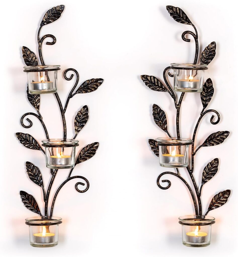 • VINTAGE CANDLE SCONCE SET – This metal leaf candle wall sconces presents distressed finish on black color, all handmade by experieced craftsman, it will add an attracting accents to your home decor